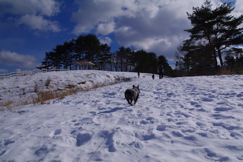 キャンプ場へ行く前に 雪中散歩。