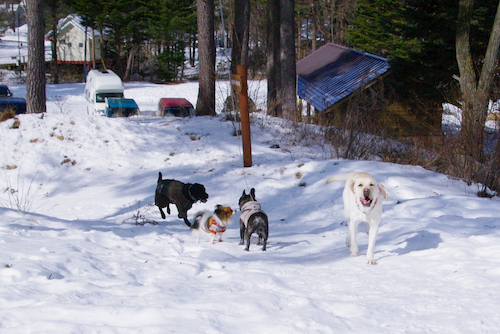 雪中キャンプ、犬もテントも汚れず快適快適☆