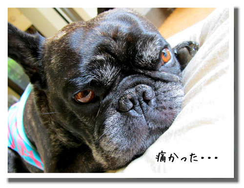 っ事で、右前脚を触ると嫌がった。 ココだな